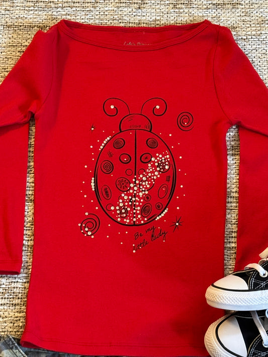 “Be My Little Lady” Red Rhinestone Ladybug Boat Neck Top