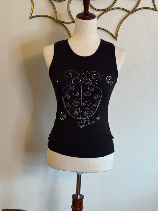“Be My Little Lady” Black Rhinestone Ladybug Tank Top